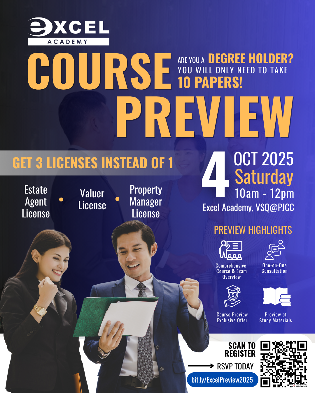 And hereโs the best part, by taking this exam, youโre not limited to just one license. You can secure three (3) professional licenses of Estate Agent, Valuer & Property Manager Licenses.
