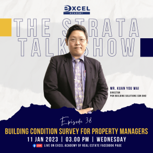 Join us for the 38th episode of the Strata Talk Show on the 11th of January 2023 (Wednesday) from 3pm โ 4pm, streamed live on the Excel Academy of Real Estate Facebook Page.