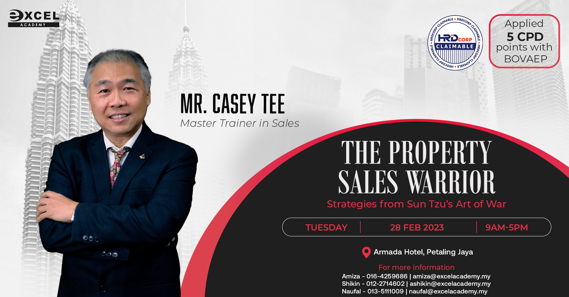 excelrealestate2023-02-20T14:31:44+08:00[๐๐๐ ๐๐๐ฆ๐ข๐ง๐๐ซ] ๐๐ก๐ ๐๐ซ๐จ๐ฉ๐๐ซ๐ญ๐ฒ ๐๐๐ฅ๐๐ฌ ๐๐๐ซ๐ซ๐ข๐จ๐ซ: ๐๐ข๐ง๐๐ฌ๐๐ญ ๐๐ง๐ ๐๐ญ๐ซ๐๐ญ๐๐ ๐ข๐๐ฌ ๐๐ซ๐จ๐ฆ ๐๐ฎ๐ง ๐๐ณ๐ฎ'๐ฌ ๐๐ซ๐ญ ๐จ๐ ๐๐๐ซ The Property Sales Warrior CPD Seminar will kick off in a little over a week from now. With that, this is your last call to register with us! Be sure not to miss the opportunity to acquire the most comprehensive blueprint in strategizing for any emerging challenges in 2023 that are applicable in the Malaysian context and environment and ramp up your property sales. ๐๐๐ฆ๐ข๐ง๐๐ซ ๐๐๐ญ๐๐ข๐ฅ๐ฌ ๐๐จ๐ฉ๐ข๐: The Property Sales Warrior: Mindset and Strategies from Sun Tzu's Art of War ๐๐๐ญ๐: 28 February 2023 (Tuesday) ๐๐ข๐ฆ๐: [...]