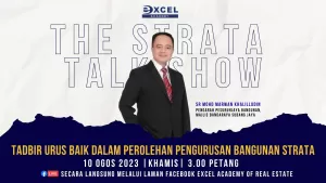 Sertai kami dalam program The Strata Talk Show bagi episode 64 pada 10 Ogos 2023 (Khamis), jam 3.00 petang hingga 4.00 petang secara langsung melalui laman rasmi Facebook Excel Academy of Real Estate.